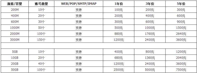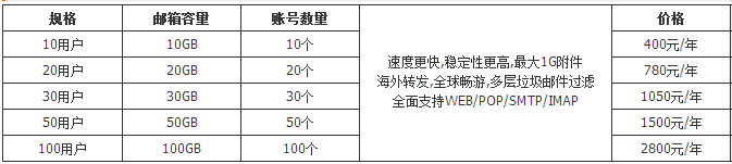 企業(yè)郵箱A套餐(適合用戶少的企業(yè))